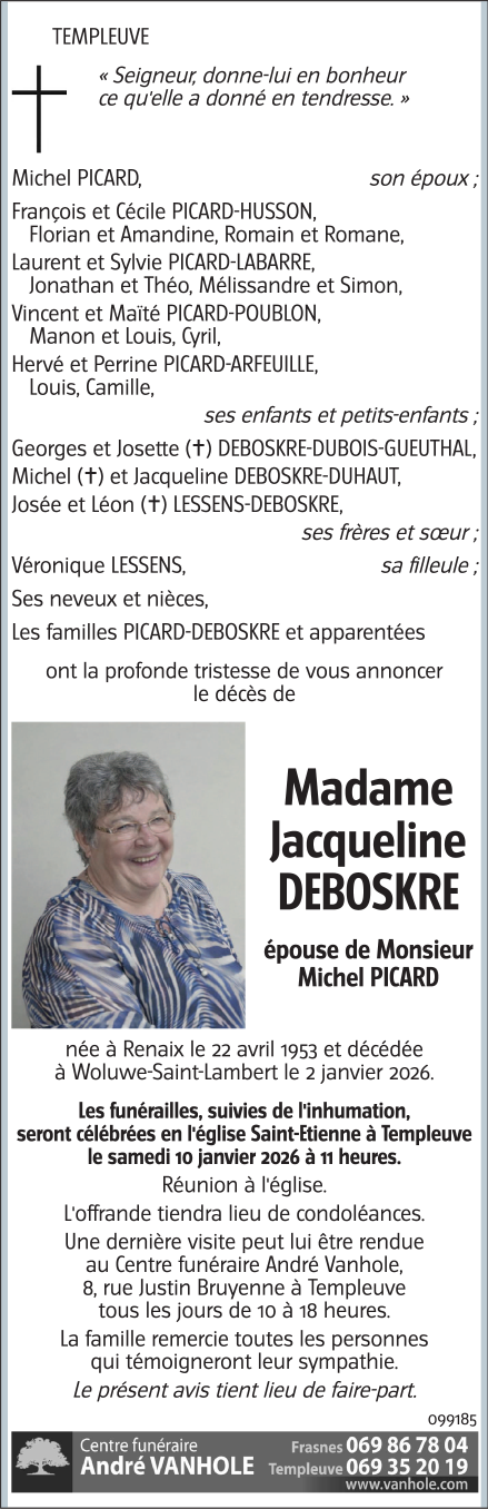 Madame Jacqueline DEBOSKRE