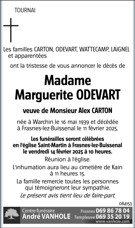 Décédée à Frasnes-lez-Buissenal (7911) le mardi 11 février 2025 à l'âge de 85 ans