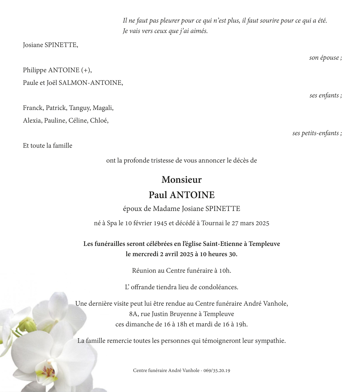 Né à Spa (4900) le samedi 10 février 1945